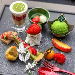 This luxurious plate featured a total of eight sweets and savories, including matcha green tea and seasonal strawberries.