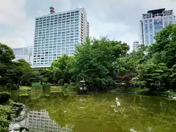 Hibiya Park holds the distinction of being Japan's first Western-style modern park, opening in 1903. Located in the heart of Tokyo's government and business district in Chiyoda Ward, it is a sprawling 40-acre green space that masterfully blends Japanese garden aesthetics with European landscaping. It features open lawns, flower beds, a large pond, fountains, and performance venues, all set against a dramatic backdrop of skyscrapers.