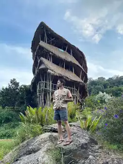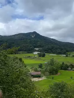Giant Bamboo House, Mae Klang Luang - Accommodation in the middle of a green rice field, the sound of gently flowing water next to the house, the sound of rain knocking on the bamboo roof at a steady rhythm, looking out to see only a green rice field and fog covering the top of the mountain.