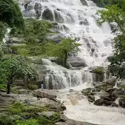 Mae Ya Waterfall is considered one of the most beautiful waterfalls in Thailand. Located within Doi Inthanon National Park in Chiang Mai Province, it stands out with its cascading waters over 30 wide rocky cliffs, reaching a total height of approximately 260 meters. This creates a massive, white curtain of water that contrasts beautifully with the lush green forest.