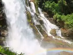 Wachirathan Waterfall is one of the beautiful waterfalls within Doi Inthanon National Park. It's a large waterfall, cascading down from a 70-80 meter high cliff. The powerful cascade of water creates a misty mist that diffuses throughout the surrounding area. When the sunlight hits it, it creates a beautiful rainbow.