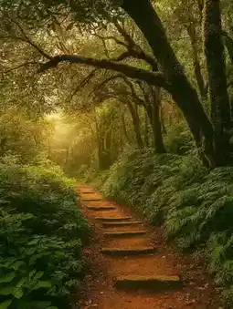Montreal Evergreen Forest (Cloud Forest): The first section of the trail is humid, cloud-covered montane forest, overcast with dappled sunlight and covered with moss and ferns.