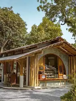 A cafe in a 100-year-old lychee orchard on the banks of the Bang Khun Thian Canal.