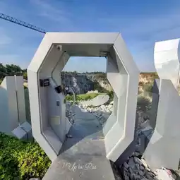 ✨🛸 A space-style cafe that feels like you're in another world. The outdoor atmosphere is open, with a view of the fields in front of the mountains. You can see the Grand Canyon in 180 degrees. No matter which angle you take a picture from, it's incredibly advanced, with artificial cliffs, as if you're traveling in space. It's a perfect blend of technology and the modern world.