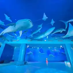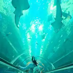 The highlight is the giant water tunnel zone, a glass tank for walking and watching the fish 🐋🪼🦈🐟🐡 in a fun way.