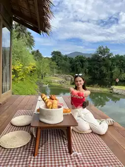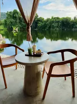 Chonburi cafe The shop is located amidst mountains and a private lake. It feels like being in Khao Yai. The area is spacious, shady, and natural. There are both indoor and outdoor zones. There are many photo zones. If you go during the holidays, there will be quite a lot of people.