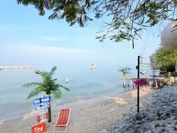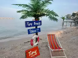 Tiny Island Cafe or "Koh Tiny" is a beach bar style cafe by the sea in Bangsaen. The sea water is very clear. Comes with the sound of waves and gentle sea breeze in the morning atmosphere ⛅️ Chill atmosphere, island feel. The landmark of Koh Tiny is a tiny island in the middle of the sea 🏖️
