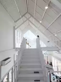 Atmosphere: The cafe has a nice ambiance with a beautifully decorated white building. It has two floors with seating available both indoors and outdoors. There is a parking lot. The drinks taste good, not too sweet, and are priced like typical cafes. It's located by the beach, so you can walk straight to the sea. The staff provides good service. It's a great place to relax with a drink before taking a stroll along the beach.