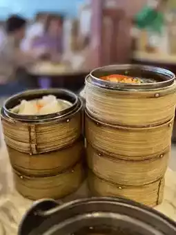 Go Aun, a dim sum restaurant with a variety of dim sum menus to choose from. You can pick up a tray and dim sum from the machine and then pay at the cashier.