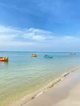 Bangsaen Beach is a popular beach in Chonburi Province, located about an hour from Bangkok, making it an ideal holiday destination. With its long stretch of beach, bright blue sea and lively atmosphere, Bangsaen Beach offers a variety of activities, including swimming in the sea, jet skiing, cycling along the beach or enjoying fresh seafood at the restaurants and stalls by the sea. Nearby attractions include Khao Sam Muk and Bangsaen Walking Street, which provide a complete tourist atmosphere.