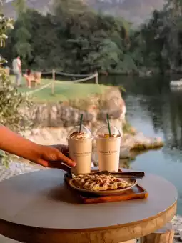 The shop is decorated with wooden furniture, giving it a cozy and warm feel. There are also a variety of drinks and desserts. It is also only an hour from Bangkok.