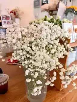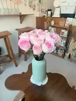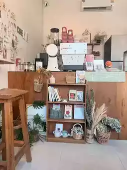 It is a small, minimalist shop in white and green, decorated with cute flowers. It is pleasing to the eye and warms the heart. There are many beverage and dessert menus at prices starting from ten baht. The flower shop offers many types of flowers to choose from. If you are interested in ordering flowers for a special day or sitting and sipping coffee, it is a great place to feel good. Plus, taking pictures from any angle is cute.