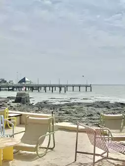 This is a small cafe by the sea on a private beach. The vibes are great. The highlight of this place is a small island with flags. The seats here are outdoor. The wind is cool and comfortable. Plus, this place is pet-friendly, which pet lovers will definitely love.