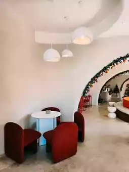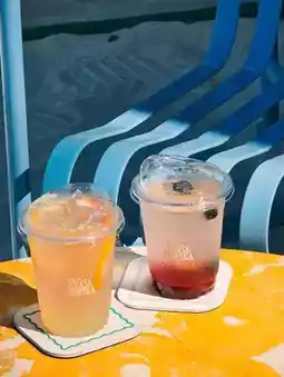 Since we're chilling by the sea, we ordered something refreshing and a little fruity. We ordered a Sparkling Juice. There's a 🍋🍓Pink Lemonade that's sour and sweet. It's so refreshing to drink. There's also a 🫐🍓Berry Bilss. This glass has the aroma of mixed berries mixed with the sweet aroma of lychee. The shop also has many other delicious-looking baked goods for us to order to go with our drinks.