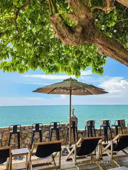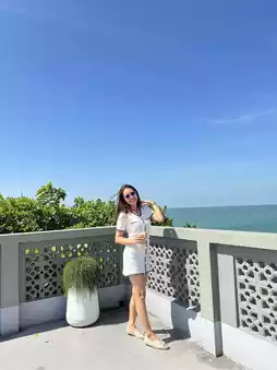 A Chonburi cafe with lots of photo spots, Hidden Lab is a cafe that caters to those who love taking photos by the sea and cool street style. Let me tell you that there are lots of photo spots and many zones, whether it's a new building zone decorated in a modern style with a rooftop for viewing the view or an old building zone that caters to those who love coolness and taking photos. If you go, I recommend capturing every atmosphere because the cafe has many zones: indoor with cool air conditioning and outdoor with a sea breeze. Most importantly, if you go in the evening to watch the sunset, I must say that it's awesome. The desserts and drinks are very good, I must say.