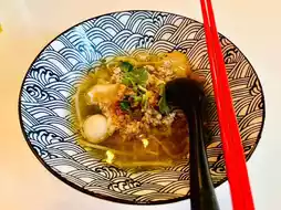 🎊🍜🍽️Let's taste the delicious food at Tui Tui Noodle, the most delicious restaurant in #Bangsaen. There are many delicious menus to choose from. If you try it, you will love it. 🌟There are both traditional noodles, yen ta fo, dry rice, basil rice, congee, boiled and dipped, fried food, snacks, desserts and drinks.
