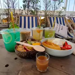 A super cool cafe, super chill atmosphere by the sea on a private beach. There are canvas beds and hammocks to lie down and chill. In the morning, the light is great or the sunset in the evening is super romantic. This is a pet-friendly cafe. The shop's menu has both coffee and non-coffee at good prices. And in the evening, it becomes a chill beach bar. I must say that you can sit for a long time. For those who want to relax, I recommend this place.