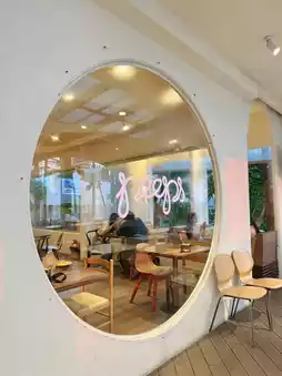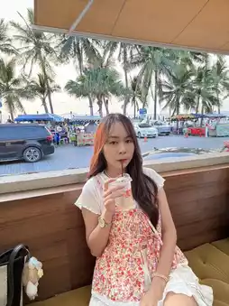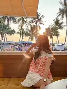 The "Peeps" cafe is right on Bangsaen Beach. 🏖️ I recommend going in the evening because the light is beautiful. 🌅 The price of drinks is 100+-. There are many photo spots. The spot you can't miss is the seat in front of the shop. It feels like Miami. 🌴 I recommend coming on Tuesday. The view outside will not have shopping carts. It will be very clean. 👍🏻.🫶🏻 There are many drinks here, desserts, and brunch. And here, it is pet friendly. You can bring your dog or cat. 🐶🐈