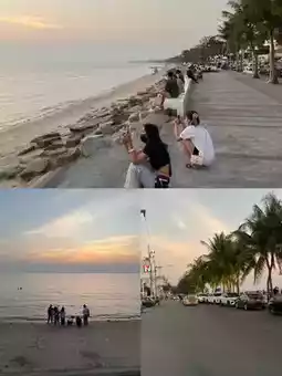 Wonnapha Beach, 5 minutes walk from Bangsaen Beach, there are many restaurants, cafes and bars near the beach, in the evening it is quite crowded