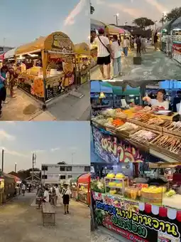 Bangsaen Fish Market, a market decorated in Japanese style, lots of photo spots, there are food stalls selling snacks, seafood, Japanese and Thai food, lots of parking, clean bathrooms