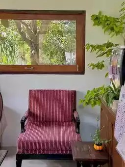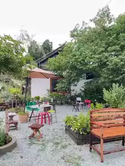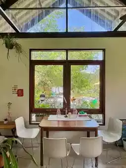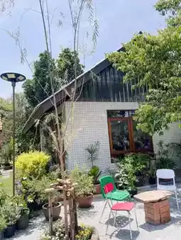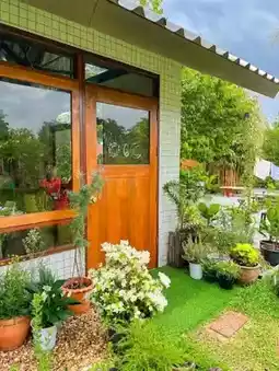 Home cafe with a very cozy atmosphere, shady, warm, very chill
