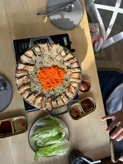 The restaurant is decorated in a traditional Korean style, offering both indoor and outdoor seating. It’s perfect for dining with family, friends, or loved ones, providing a warm and friendly ambiance.