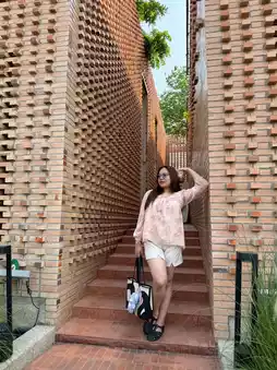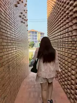 a striking architectural design with large orange brick walls, creating an atmosphere that feels like Ayutthaya.