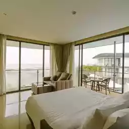 Another accommodation in Bangsaen that has just opened not long ago, right by the sea, the atmosphere is super nice, you can see the sea view from every room, there is a bathtub in every room as well, and it comes with a swimming pool in the middle of the hotel, which is awesome. The feeling here is perfect for recharging your body.