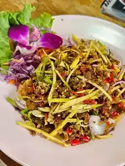 A legendary local seafood restaurant in Bangsaen. Here, fresh seafood is cooked into local dishes by the chefs who have passed down the generations. The restaurant's signature menu is fried mantis shrimp with garlic. It's like a menu that every table has to order.