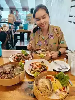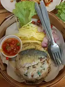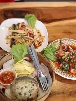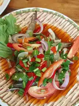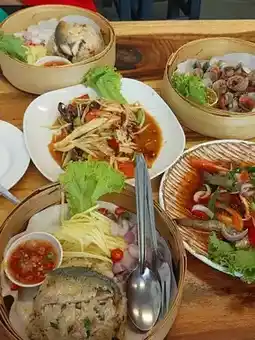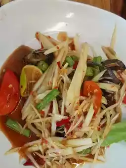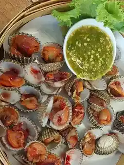 Khao Long Keng is a small restaurant by the sea at Wonnapa Beach and has become our regular restaurant. Every time we come here, we have to stop by to eat. In addition to the fresh seafood, the taste is very delicious. For us, the papaya salad is very spicy. This time, we ordered Som Tam Poo Pla Ra, medium spicy, Khao Mao, Yum Kung Sod, and Boiled Cockles. Every menu is fresh, new, and delicious. I want everyone to try it, especially the crabmeat rice, very delicious.