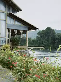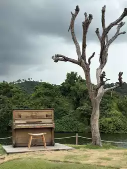 Serene House Cafe is a popular cafe in Chonburi province, known for its natural ambiance. Nestled among the mountains, it offers a cozy atmosphere reminiscent of Khao Yai. The cafe features both indoor and outdoor seating options, with various photo spots such as a piano in the water. It's recommended to visit in the morning or evening for beautiful lighting and fewer crowds.
