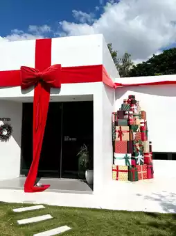 • Minimal modern style — The structure is a white block, contrasting with green trees and Bangsaen sky. Decorated with large glass windows that receive natural light, making it feel airy and comfortable.