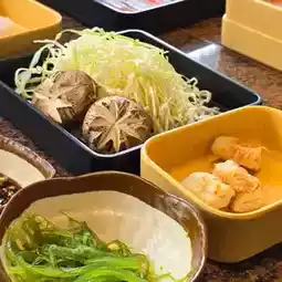 Kappa Shabu restaurant, Japanese style Shabu buffet, you can eat for 2 hours. There are 2 prices: 390, economical but worthwhile, and 790, add premium meat and authentic Japanese sushi menu. Both prices include drinks, no additional charge. Walk in and contact the counter, where the shop will let us choose 2 types of soup: clear soup and black soup. Of course, we chose black soup. The shop will have 2 types of tables to choose from: the first type is a seat like a general Shabu restaurant, with a pot of 2 types of soup, suitable for coming with many people. The other type is a bar seat, suitable for coming alone, 1 person per 1 pot. If you sit at the bar, you will see a Japanese waterfall view. It's awesome. We ate the economical price of 390, but I must say it's worth it. The meat is of good quality, soft and smooth on the tongue, not tough. There are 2 types of dipping sauces here: sukiyaki and ponzu. The dipping sauces are also delicious. And what is not to be missed is sushi. At 390 baht, there are about 4 sushi menus to choose from, but all 4 menus are of good quality. It is considered delicious. The soup tastes a bit sweet, but it is acceptable. There are many staff here.