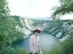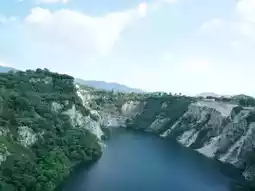 "Khirinakorn Stone Mine" or as many people call it, Kiri Grand Canyon, was originally an abandoned mine. It is a photo spot on a rocky hill. Below is a large pool created by digging up soil to sell. It is an old laterite pit that has been abandoned for many years. It is about 30 meters deep. Inside the pit, the water is emerald green during bright sunlight and changes depending on the weather. If it rains, the water will turn black. The mountain view is beautiful. Walk and take pictures and enjoy the view.