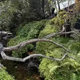 2. Perfect harmony with nature, featuring an open hall that welcomes light and rain, surrounded by a large tree.
