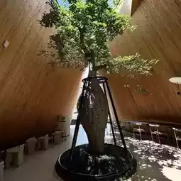 2. Integrating a large tree in the middle of the shop creates a natural connection area in the middle of the building ()