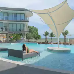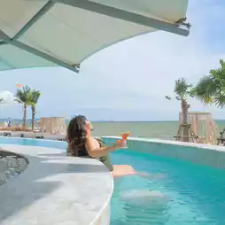 💙Atlantis Manor Bangsaen, a newly opened hotel with a sea view, a swimming pool, a good cafe, and a beach club. All rooms have sea views. It's close to Wonnapha Beach, just a 10-minute drive away.