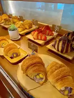 Khao Lam Croissant, it was very delicious. Sob. Prepare your stomach. There are both black sticky rice and white sticky rice. You can choose. There are also other types of croissants and many other desserts. You can find everything in one place, both their food and desserts. There is also ice cream. 🧁