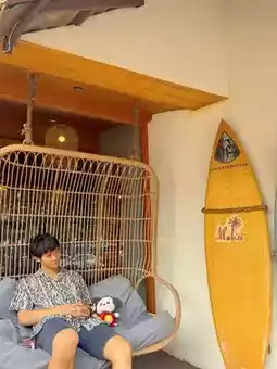 Bangsaen or abroad, seriously, the area where we sat was a chill-out area, taking cute photos. The shop also has a rooftop area at night (we will review it again next time).