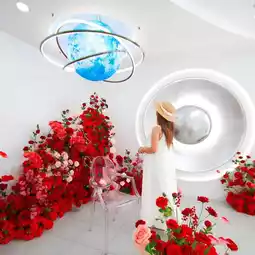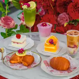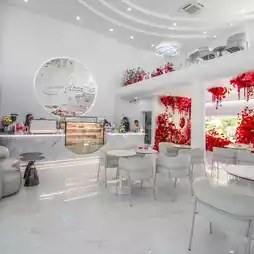 Decorated with vibrant red flowers contrasting with minimalist white tones around a moon motif, Artemis Cafe Bangsaen offers a magical atmosphere. The cafe features beautiful photo spots, including a green garden area with a small stream at the back. Inside, there are two floors adorned with stunning red flowers. The menu includes a variety of drinks and delicious bakery items that are a must-try. Open daily from 7:30 AM to 5:30 PM.