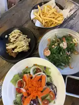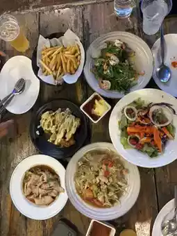 There are fresh milk drinks, coffee, iced bread, single-dish rice, desserts such as iced bread, lots of cheese, including Thai single-dish menus such as Somtam, glass noodle salad, fried chicken with lemon sauce. A milk shop that every time I go, I almost never drink milk ... The food is very delicious, whether it's fresh blue crab, crispy chicken with lemon sauce, or glass noodle salad, where you can sit and chill and watch the sea in the evening.