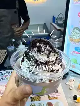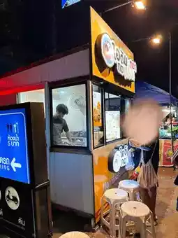 This shop is a small booth located right on the beach. They serve fried ice cream by the bell. When they serve you, you ring the bell once. This shop has a unique identity. If you want free ice cream, you can, but you have to toss a coin into the jar in the middle. ((But we couldn't 😆))