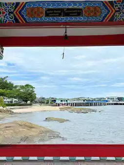 We walked along the seaside for about 200 meters and arrived. Even though it's right on the beach, the shrine's colors are vibrant and well-maintained. Inside, there's a small shrine with a statue of the goddess inside. It looks ancient, sacred, and simple.