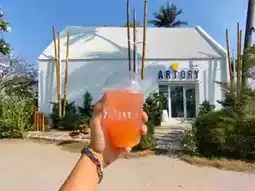 Located in a quiet area of Bangkok, Artory Cafe Crafts is more than just a cafe; it's a special place where art and craft come to life. The cafe showcases works by local artists, allowing visitors to appreciate art while enjoying coffee and light snacks. The coffee is carefully hand-brewed, resulting in a rich aroma and flavor. The homemade cakes and sweets are particularly popular, with a subtle sweetness that pairs perfectly with the coffee.