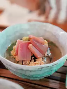 ✨ A highlight is the Ochazuke, or tea-topped rice. Choose from matcha, sencha, hojicha, or genmaicha green tea, and pair it with authentic Japanese toppings like grilled salmon, fried tofu, mentaiko, or tuna.