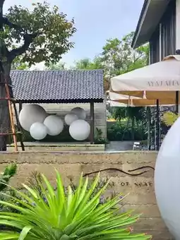 The photo spot outside the Bangsaen branch features six balls, representing the six senses.