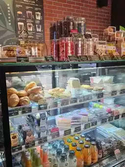 The croissants are outstanding, soft and fragrant. There are also cakes, pastries, juices, and ready-to-eat sandwiches. If you're hungry on the way, this is the place to go.