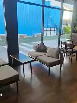The shop is spacious, airy, and cool with air conditioning. There are many seating areas, both for working and relaxing with friends. There's also a corner with lush trees for beautiful photos.
