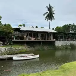 🫕 The cafe is located on the waterfront, with a lake on the side, creating a relaxing atmosphere. The open-air atmosphere is comfortable, but it doesn't feel hot. There's plenty of seating available, though if you come in the afternoon, it can get quite crowded. We recommend coming around 10:00 AM.