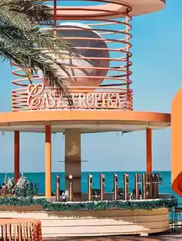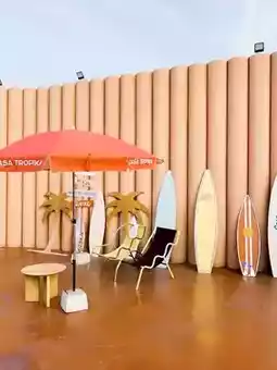 This cafe boasts a warm, wood-toned design with a high, airy gable roof that lets in plenty of cool photo opportunities. Whether it's the swings, the beachside seating, or the sandy garden tables, every spot is ready to post. 🐚📸